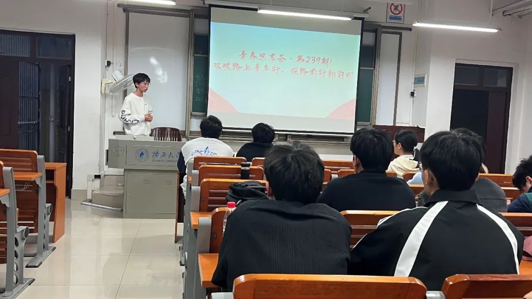为深入学习贯彻习近平总书记关于碳达峰碳中和工作的重要论述,帮助青年学子理解习近平新时代中国特色社会主义思想对我国生态文明建设的重要影响,12月17日,36365线路官网在六教108教室开展了“‘碳’路青年,共筑未来”主题青春思享荟沙龙。本次活动由共青团36365线路检测中心入口委员会主办,学院团委承办,院学生会策划开展。 分享会上,与会成员深入学习了习近平总书记关于碳达峰碳中和工作的重要论述,并集体观看了“推动实现‘双碳’目标,书写绿色发展答卷”的新闻联播短片。大家认识到,党的十八大以来,以习近平同志为核心的党中央深刻把握生态文明建设在新时代中国特色社会主义事业中的重要地位和战略意义,创造性地提出一系列新理念新思想新战略,形成了习近平生态文明思想,为新时代生态文明建设、绿色低碳发展提供了根本遵循和行动指南。 本期青春思享荟紧密衔接学院团委“‘双碳’路上青年行,探路前行韵自明”主题团日活动。作为主题团日活动的参会学生代表,沈鑫同学结合自身的专业知识,分享了自己对“双碳”目标的理解,包括绿色电力、广西绿色发展目标等双碳相关知识。龚旭彪同学也分享了自己的心得,他呼吁大家从点滴做起,勇于创新,用所学专业知识助力能源转型和绿色发展,以实际行动展现青年的责任与担当,在“双碳”征程中彰显青春的价值。 沈鑫同学在分享参会心得 通过这次青春思享荟的深入交流与思想碰撞,同学们不仅增强了个人对生态文明建设和“双碳”目标重要性的认识,更激发了大家将理论知识转化为实际行动的决心与力量。青年是国家的未来,民族的希望,面对新时代赋予的使命与挑战,电气青年学子当以更加饱满的热情、更加坚定的信念,投身于生态文明建设的伟大实践中,用实际行动践行绿色发展理念,为构建美丽中国贡献青春力量。